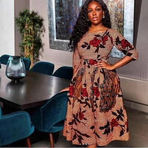 Black, Red African Ankara Fitted Party Midi Dress is Made from 100% African Wax Cotton, this Ankara outfit is neatly tailored with great finishing. Outfit comes with free headwrap. please ensure that you look through our size chart and select your correct measurements. alternatively, you can send your measurements to us and we will custom make your item at no additional cost.