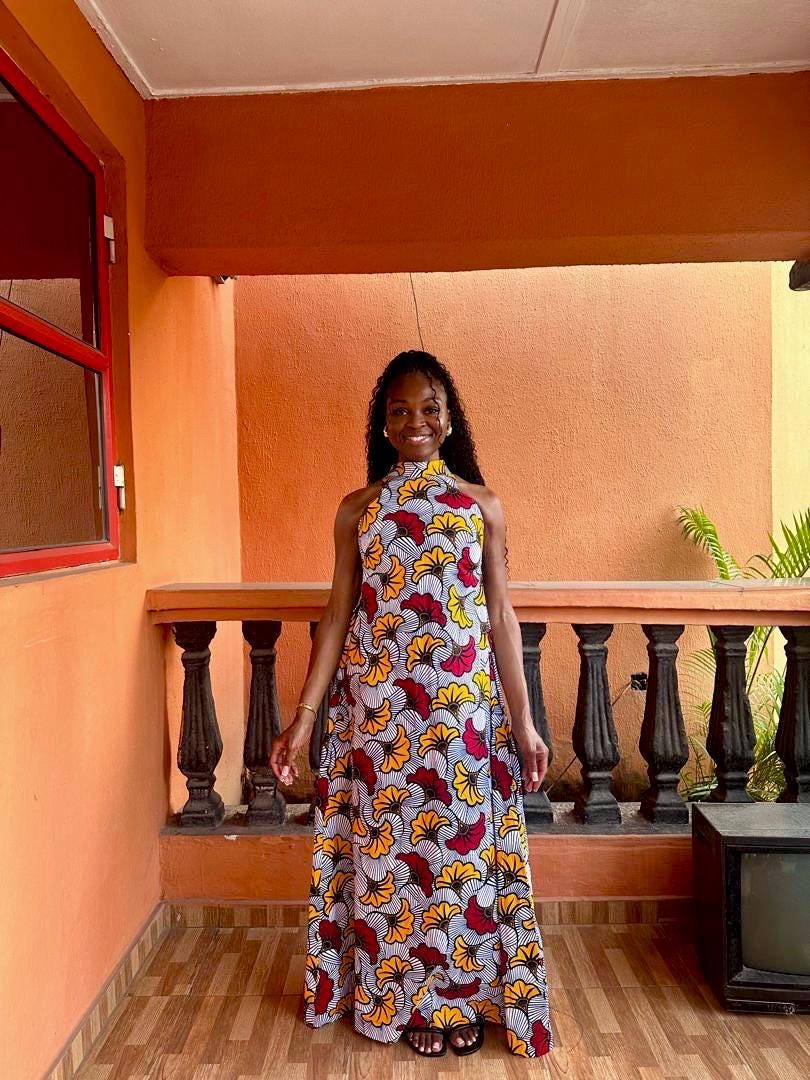 White African Ankara Halter Neck Maxi Dress For Plus Size Women With Free Headwrap, African Formal Dress For Ladies, African Bridesmaid Gown