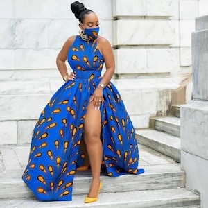 Blue Plus Size African Tye and Dye Maxi Dress Style With Free Headwrap For Women is Made from 100% African Wax Cotton; this African Ankara outfit is neatly tailored with great finishing. it is absolutely gorgeous and suitable for all occasions. Outfit comes with free headwrap. please ensure that you look through our size chart and select your correct measurements. alternatively, you can send your measurements to us and we will custom make your item at no additional cost.