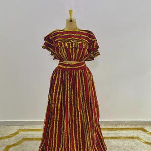 Yellow, blue African Ankara Party Maxi Dress, with a Mono strap sleeve this African cotton Ankara outfit is neatly tailored with great finishing. Outfit comes with free headwrap.