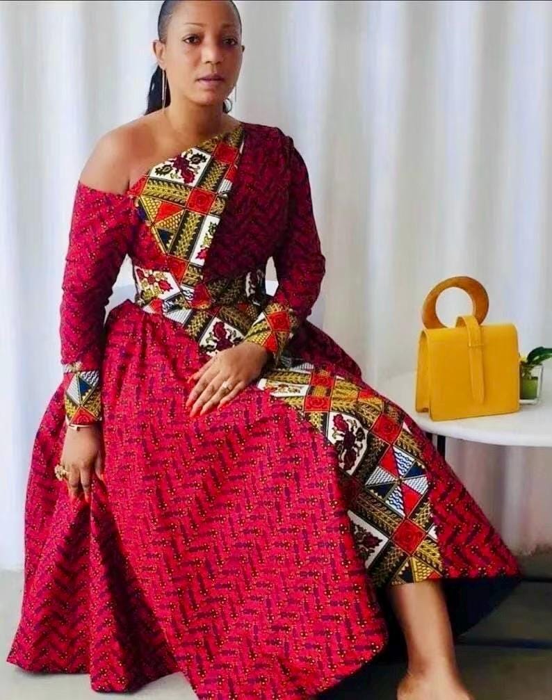 Red African Ankara Fit & Flare Maxi Dress is Made from 100% African Wax Cotton, this red and white Ankara outfit is neatly tailored with great finishing. Outfit comes with free headwrap. please ensure that you look through our size chart and select your correct measurements. alternatively, you can send your measurements to us and we will custom make your item at no additional cost.