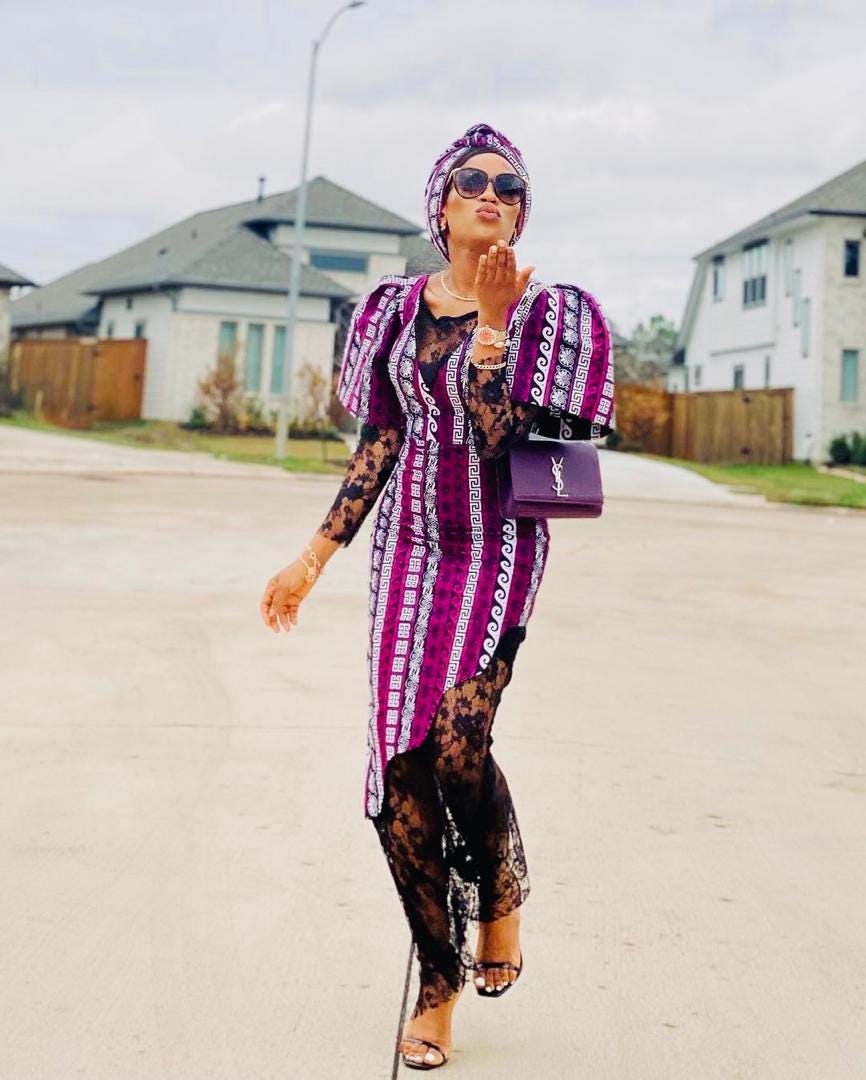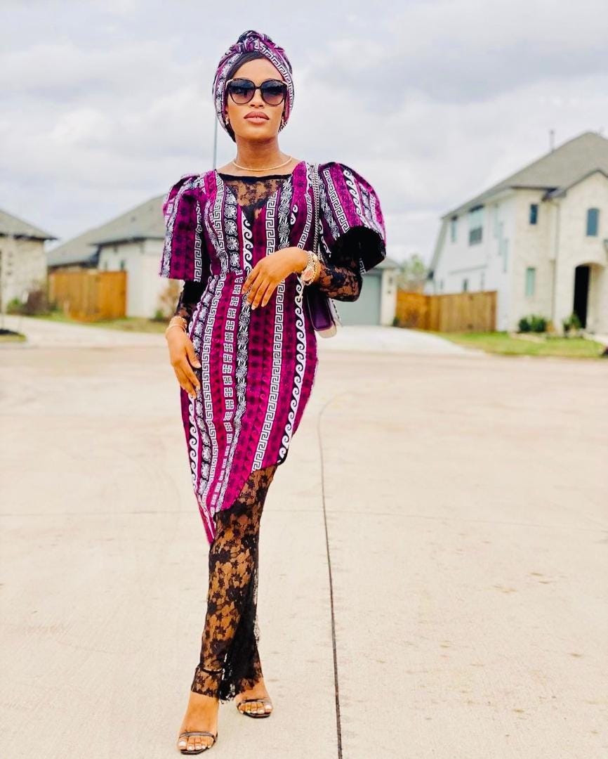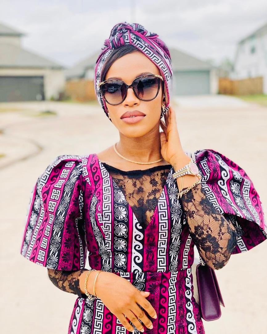 Pink, black African Ankara Print Maxi Dress For Plus Size Ladies with Head Wrap, Ankara Dress, African Dress For Women, African Wedding