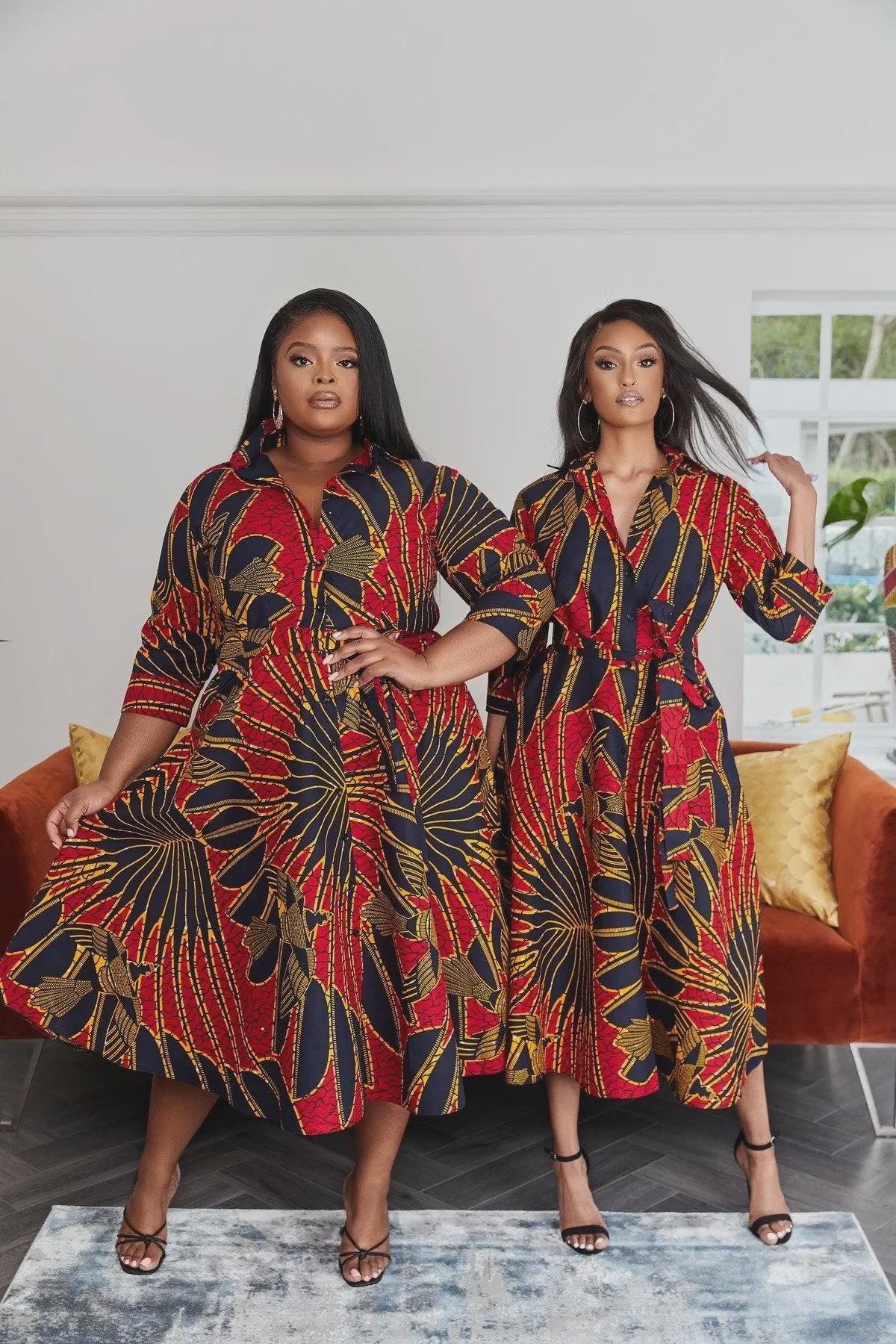 African Ankara Print Midi Shirt Dress is Made from 100% African Wax Cotton; this red outfit is made with And Ankara and comes with free headwrap and is suitable for all party occasions.