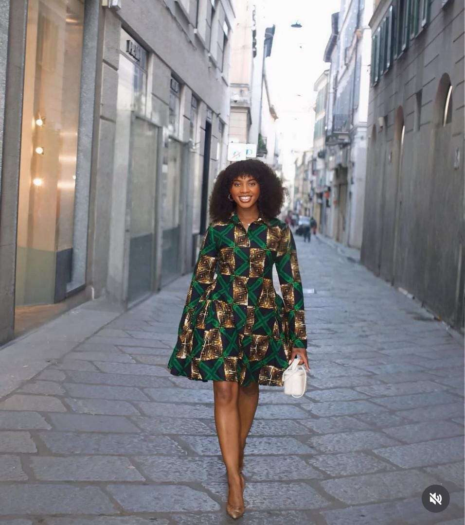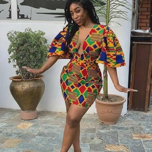 Green, Brown African Ankara Midi short Dress is Made from 100% African Wax Cotton, and this Style is so gorgeous and suitable for all occasions. this outfit comes with free headwrap and is suitable for all occasions. it is absolutely gorgeous, and the finishing is Topnotch.