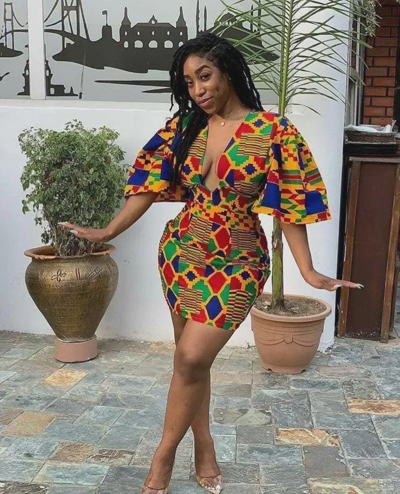 Blue, Red Plus Size African kente Short dress For Ladies With Headwrap is very stylish and made for all occasion. The style is very trendy and is Made from 100% African Wax Cotton, this Ankara outfit is neatly tailored with great finishing. Outfit comes with free headwrap.